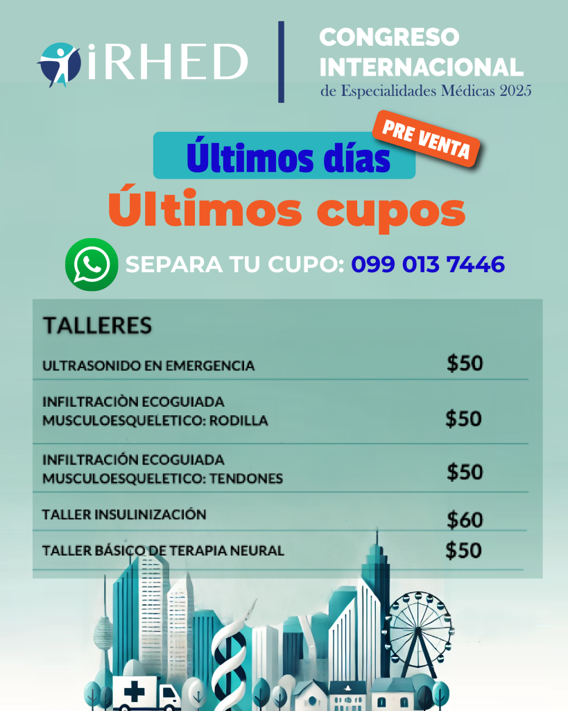 El Congreso Internacional de Especialidades Médicas IRHED 2025 no solo ofrece ponencias de alto nivel con expertos nacionales e internacionales, sino que también brinda la oportunidad de participar en talleres prácticos diseñados para fortalecer habilidades clínicas y optimizar la toma de decisiones médicas.